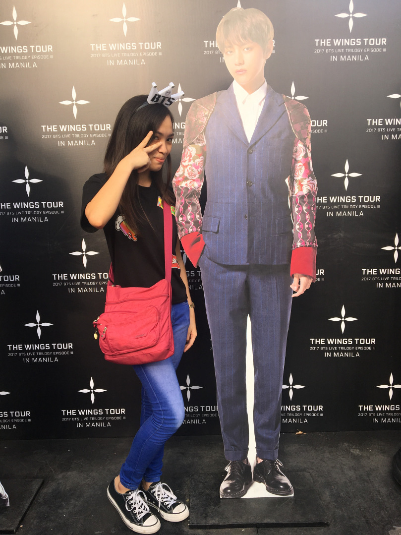 There are so many people/fans waiting outside the concert venue and there’s this thing “standee of BTS members” so we took advantage to have a selfie with them but unfortunately due to long lines we wasn’t able to take selca with each of them. And here are some of my photos with them taken by my cousin.